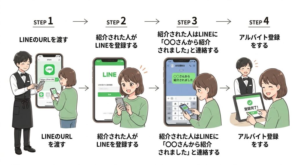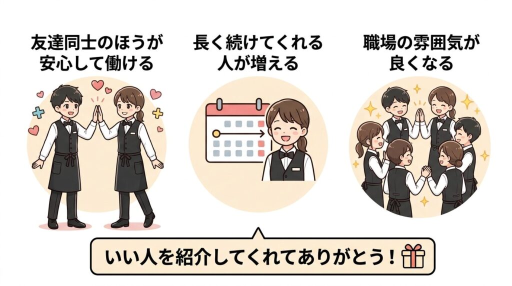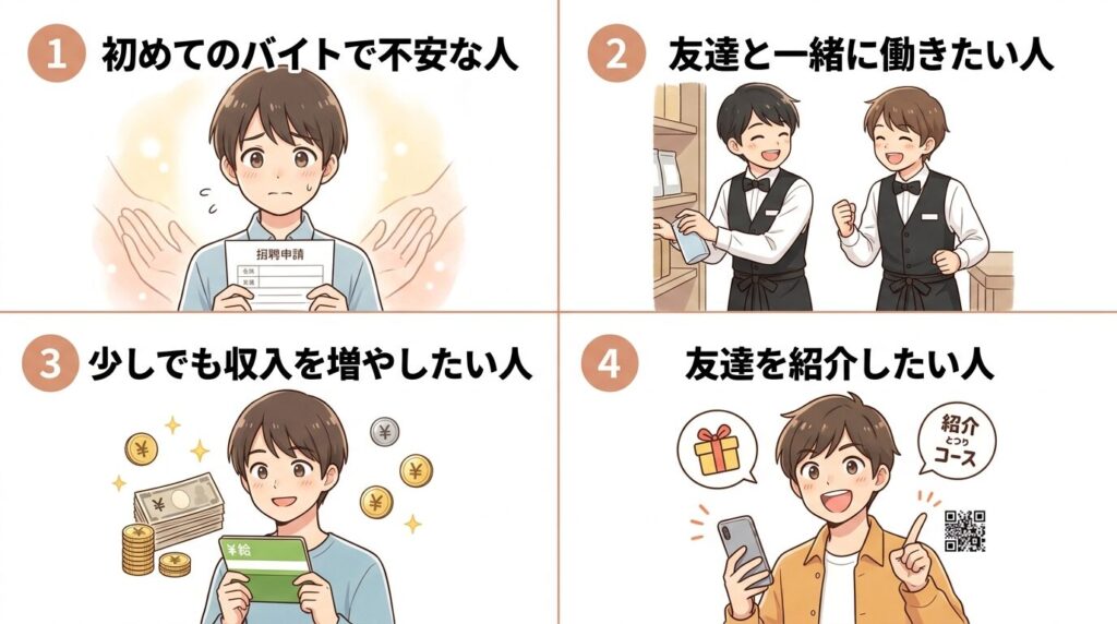 「このバイトいいよ!」と友達に教えてあげることで、その紹介がそのまま“ちょっとした収入”になります。